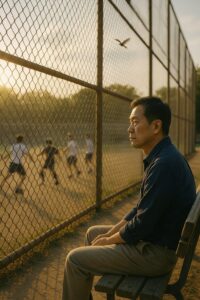 학교 운동장 옆 오래된 벤치에 앉아 있었다.