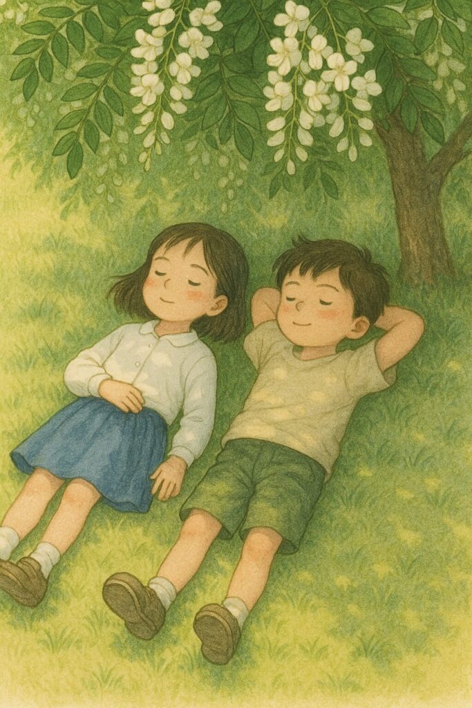 아카시아 꽃잎을 손톱으로 반 갈라보고 있었다.
