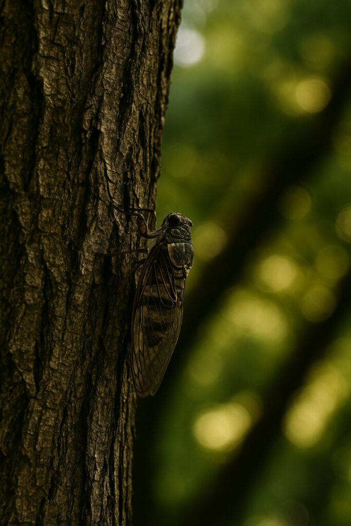 수년을 어두운 땅속에서 보내고, 마침내 한여름 땅을 뚫는다.