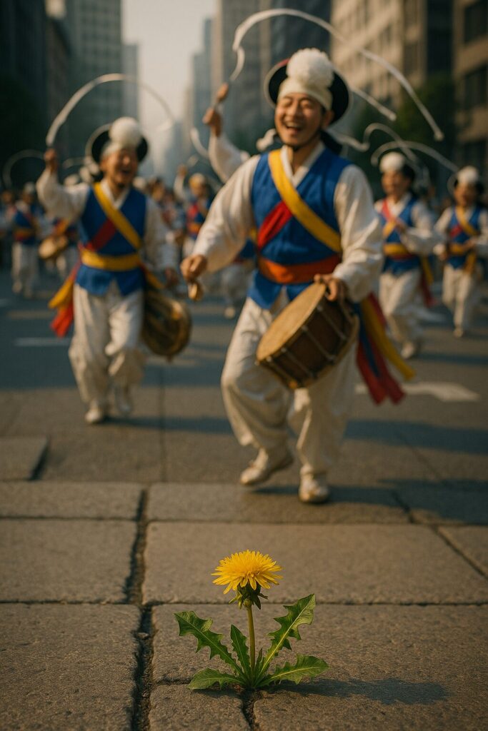 누군가는 그 거리에서 북을 치고 장구를 친다.