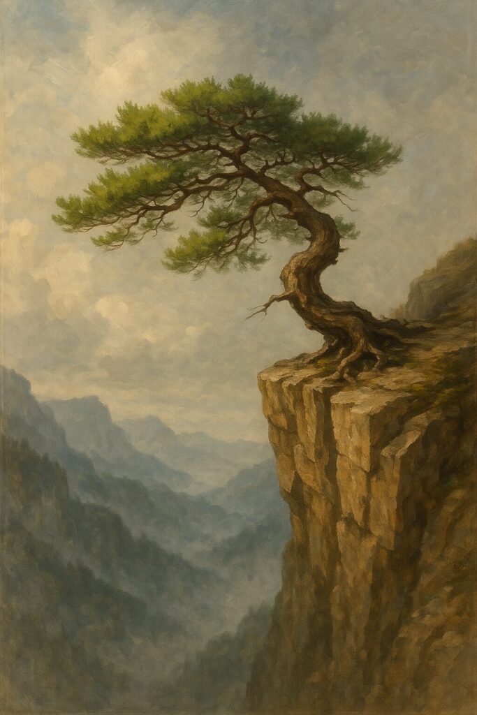 절벽 위, 바람이 스칠 때마다 외로움은 몸 안에 스며들었다. 이슬 머금은 바람이었지만, 그 안엔 살아온 날들의 거칠고 짠 흔적이 녹아 있었다. 나는 오랜 시간 이 벼랑에 뿌리를 내리고 살아왔다. 좋은 자리를 차지하는 것이 삶의 전부가 아니라는 걸, 나는 오래전부터 조금씩 배워왔다.