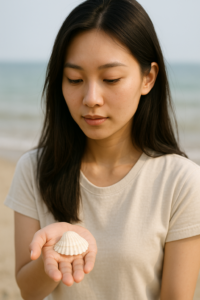 모래 위에 누운 조개껍질 하나를 주웠다.