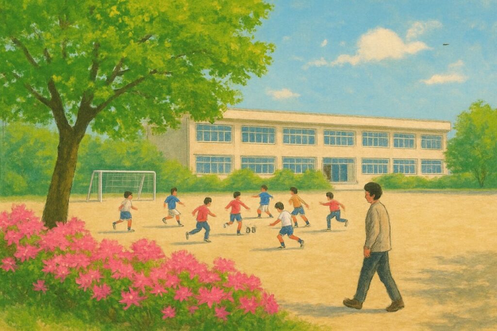 운동장을 가로지르는 아이들의 웃음을 지나며,