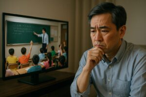 동료 교사들이 앉아 있는 교실.