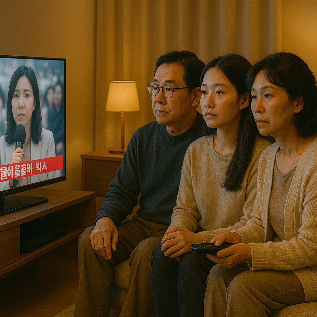 어머니는 드라마를 보며 고개를 끄덕입니다.