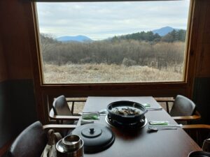 그 유리창 너머로 숲이 들어왔다. 특별히 빼어난 풍경은 아니었다. 겨울 나무들은 잎을 모두 내려놓은 채 서 있었고, 눈은 소리 없이 쌓여 있었다. 그런데도 우리는 한동안 말을 잃었다. 액자처럼 잘린 숲의 풍경이, 이상하게도 마음속 무언가를 건드렸다. 화려하지 않아서 더 오래 바라보게 되는 장면이었다.