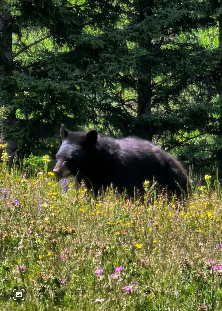 도로를 달리다 보면 곰이 풀밭에서 여유롭게 풀을 뜯고 있다.