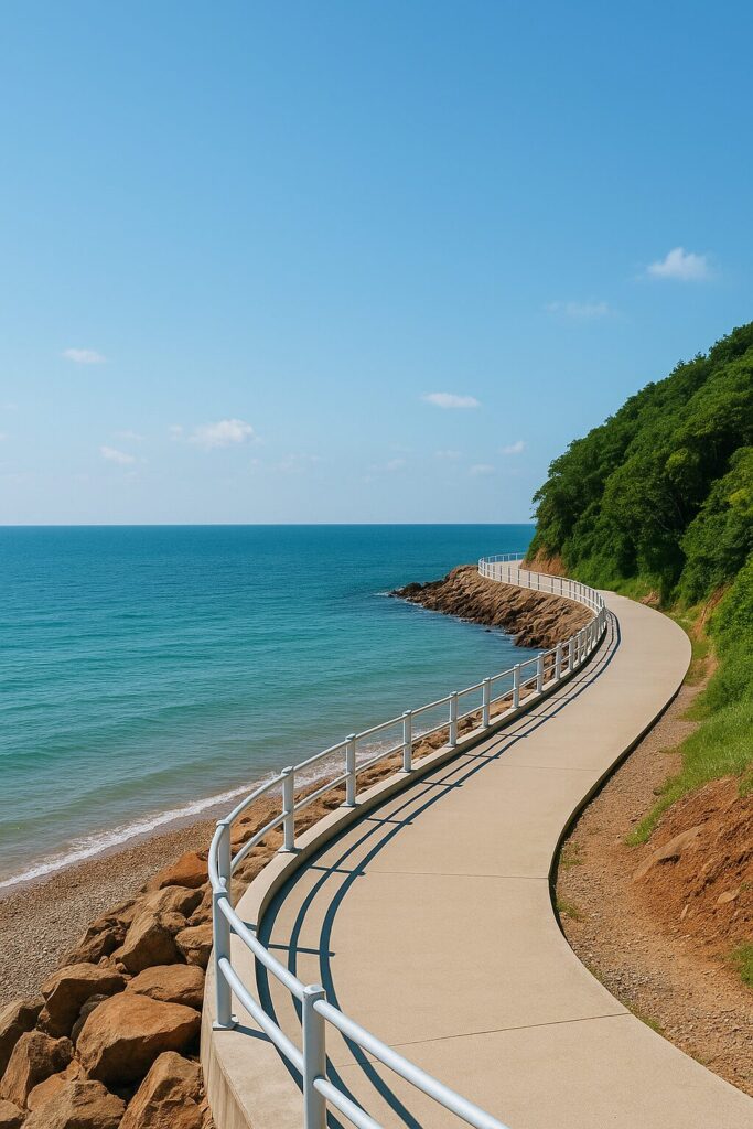 섬 둘레를 따라 걷고, 파도 소리를 들으며 작은 카페에 앉았다.
